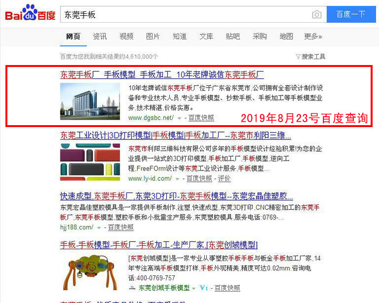 手板加工 : 2019-02-28上線    2019-03-05百度第20(原為第5頁 第7位)     2019-03-13百度第10名    2019-03-19百度第3名    2019-03-25百度第1名